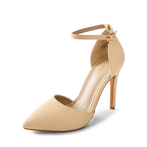 - Pointed toe stiletto heels with ankle strap