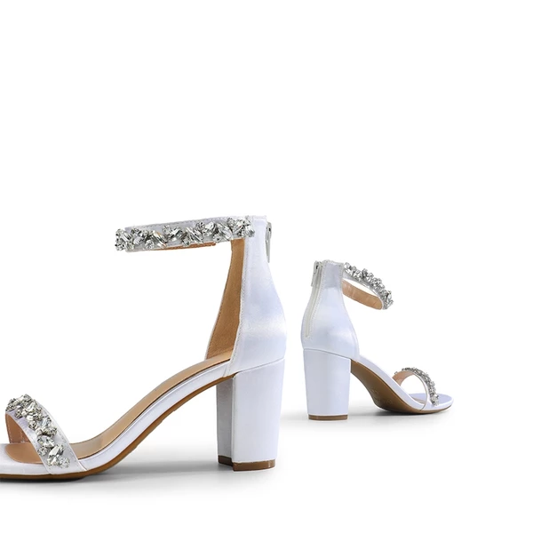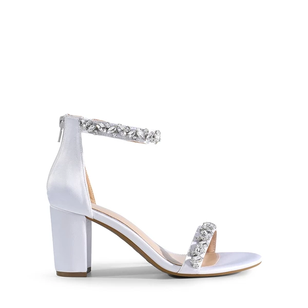 Ankle-Strap Rhinestone Chunky Heel Sandals WHITE-SATIN