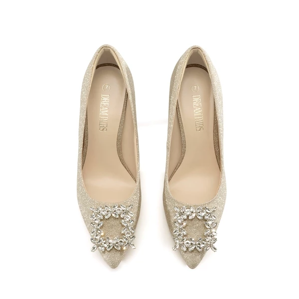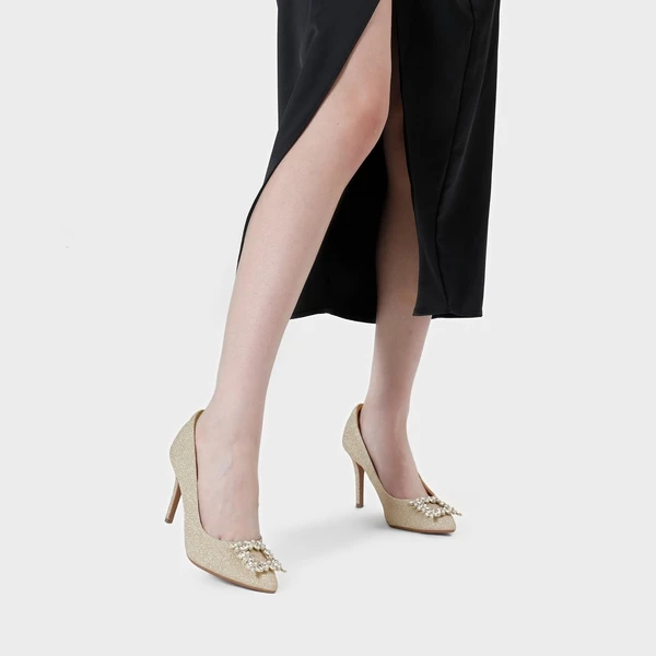 - Sparkling Style: These glittering heeled pumps have a gorgeous crystal-embellished toe ornament and is great for weddings or parties.