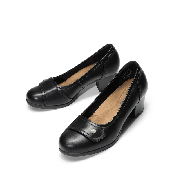 - Supportive Fit: Indulge in all-day comfort in these flexible, and arch-supporting women’s slip-on pumps. Perfect for prolonged standing without fatigue. Embrace the 1.9-inch low chunky heel and work-appropriate design.