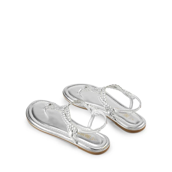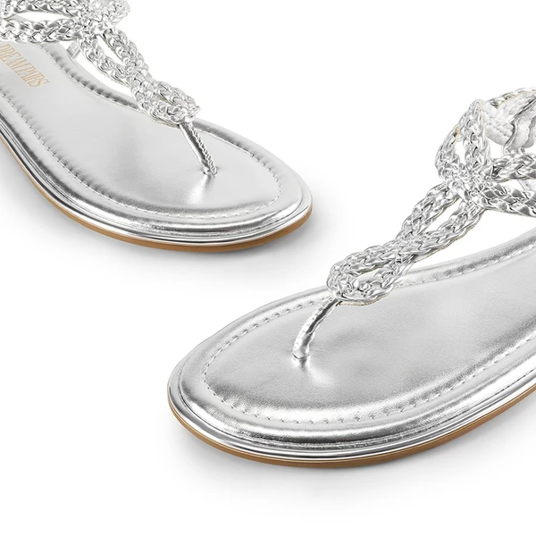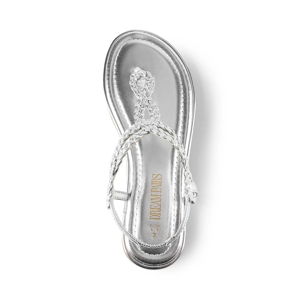 Comfortable T-Strap Thong Flat Sandals SILVER