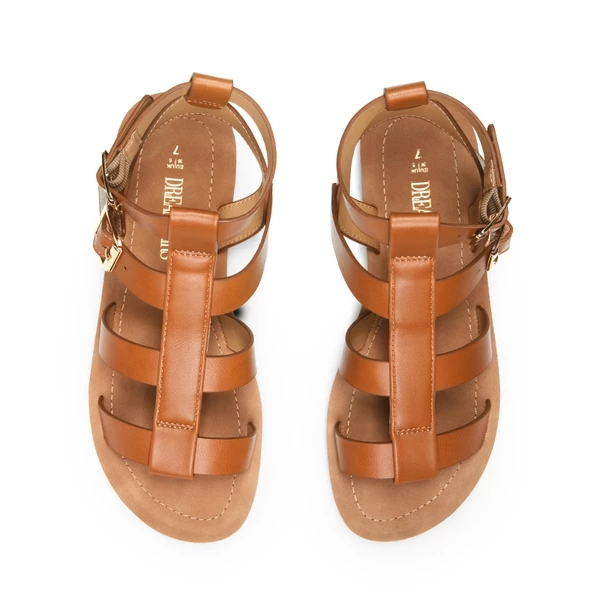 Cushioned Adjustable Gladiator Flat Sandals TAN