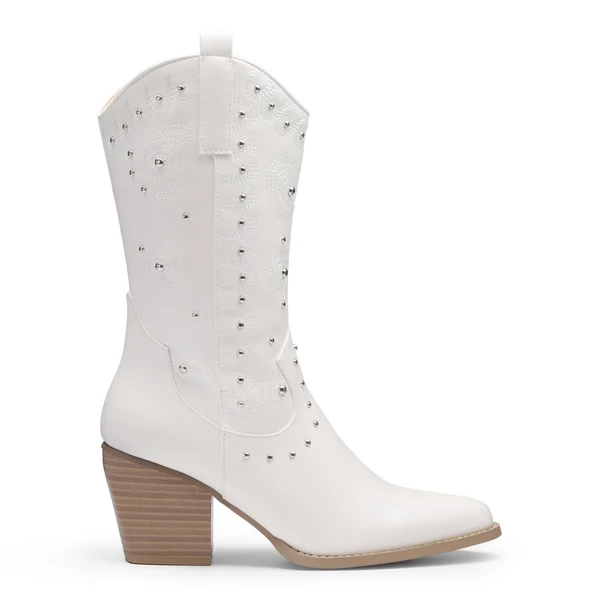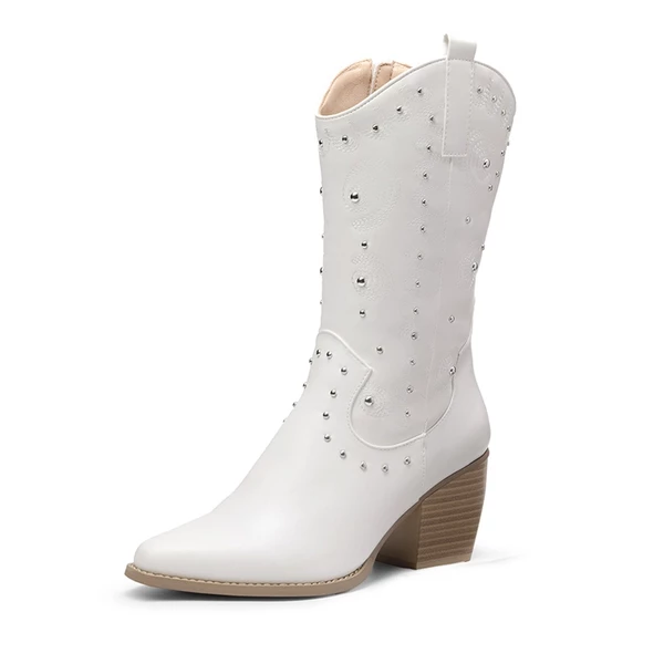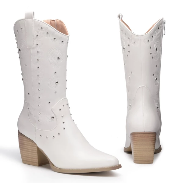 Up your game in these Dream Pairs Western Cowboy Boots for women. Featuring a 2.9-inch Cuban heel, V-cut cuff, & pointed toe that is guaranteed to add a western flair to your outfit. Stitch pattern & decorative studs add a touch of style. Pair with long dresses or charming mini dresses for a western-style look.