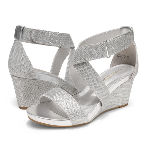 Pick a premium latex cushioned footbed for ultimate comfort. It’s easy and breezy like the feel of these lightweight straps, with a criss-cross at the ankle for an edgy modern design. We are in love with the look of these elastic strap wedge sandals and we know that you will be too. Streamline this look with a black pinstriped blazer and jeans. There you have it. The perfect look. Our women’s elastic ankle strap wedge sandals never disappoint.