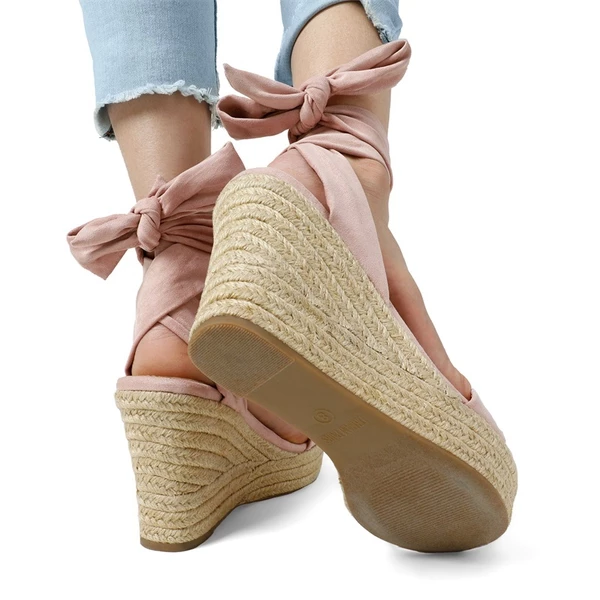 If you want a summer dreamy look, you can give our ankle tie espadrille wedges with ankle ties a try. The straps can be wrapped around the ankles and tied in a bowknot for a simple and chic style. Available in a range of colors that can be matched with a long summer dress or shorts for a stylish vacation.