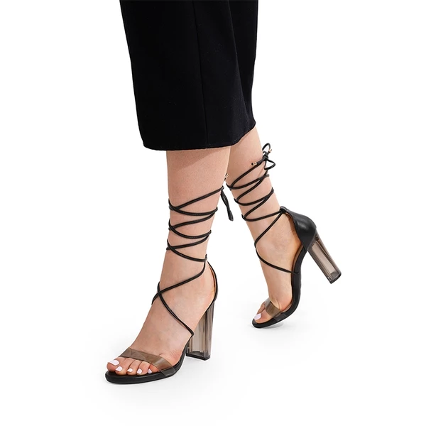 Lace Up Transparent Heel Sandals BLACK-PU