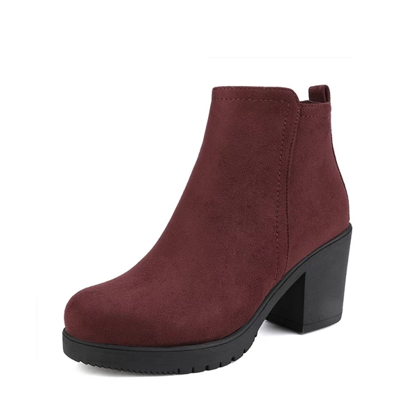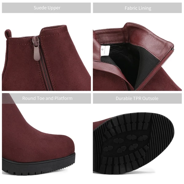 Enhance your look in these Dream Pairs women’s low-heel chunky ankle boots. Feet stay cozy with a faux fur lining, while a durable rubber outsole adds extra traction across the terrain. Meanwhile, a side zipper makes putting on and taking off a breeze. The heel measures approximately 3.5″.