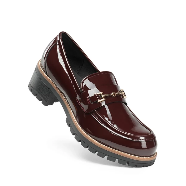 Lug Sole Slip-On Chunky Loafers BURGUNDY-PAT