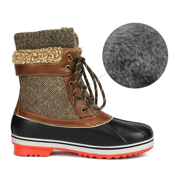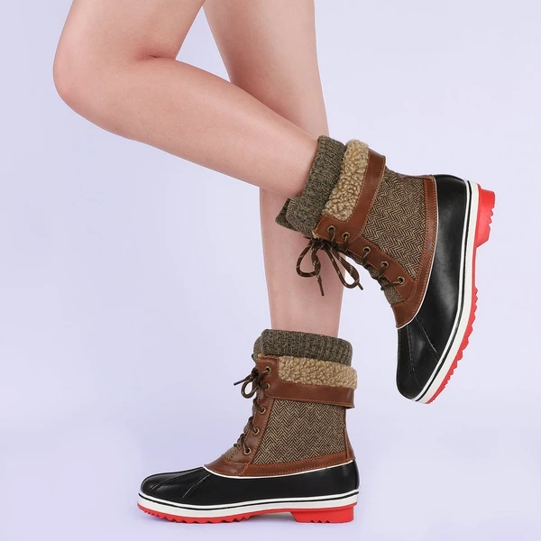 Lace-up snow boots are the go-to look of the season. They are mid-calf winter boots with plenty of style. These are the boots that give you exactly the look you had pictured in your imagination. It’s what ties together the outfit you spent all morning putting together. More importantly, they keep you warm and secure with a durable outsole and comfortable fur lining.