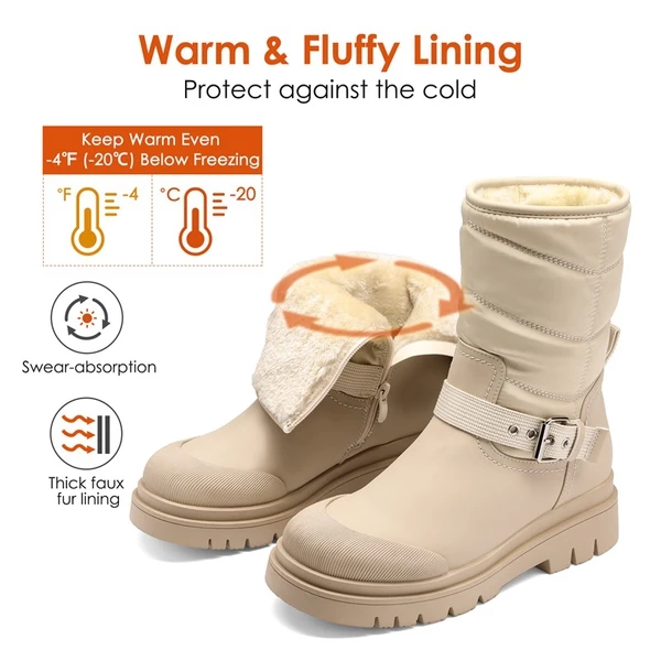 - Easy-To-Wear: These cozy boots are easy to put on and remove with a smooth side zipper. Adjust the buckle on the shaft for a snug and warm fit.