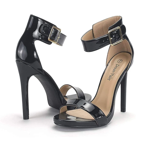 Elevate your appeal in these Dream Pairs women’s open-toe stiletto heel sandals. Platform height measures approx 0.25″, while heel measures approx 4.5″. A TPR rubber outer sole delivers superior durability and stability, while a padded faux leather insole adds more support and comfort.