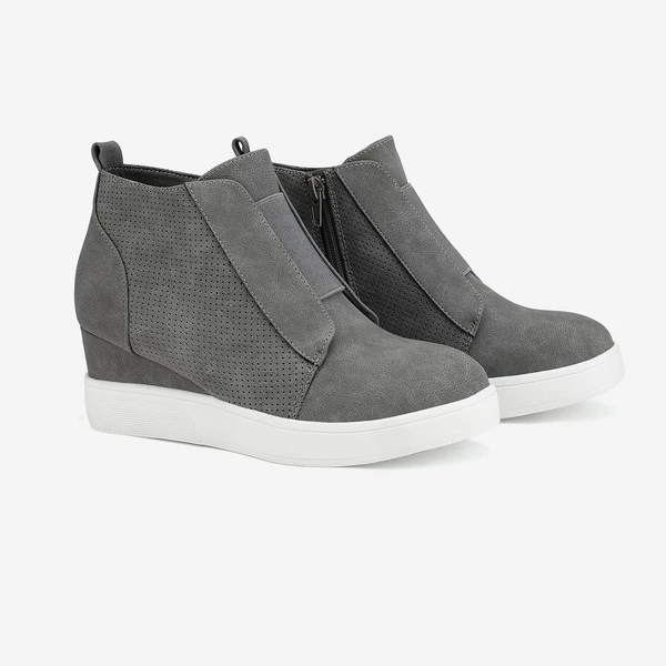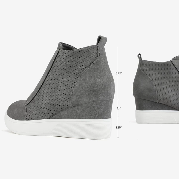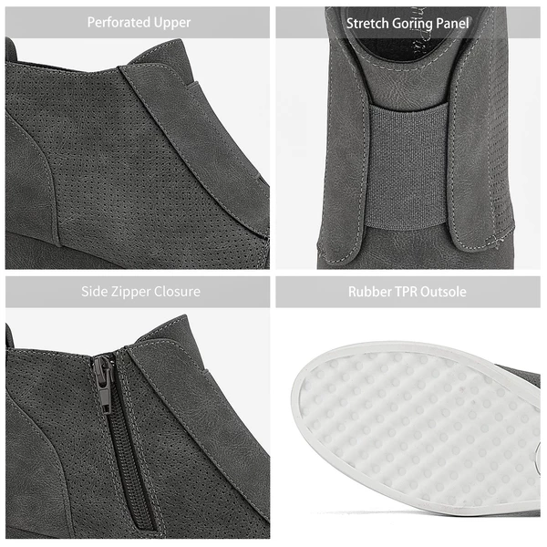 Add a slice of style in these Dream Pairs women’s platform wedge booties. Designed with perforated synthetic leather upper and a breathable leather lining. A TPR rubber sole adds extra grip, while a side zipper makes putting on and taking off a breeze. The heel measures approximately 2.35”.