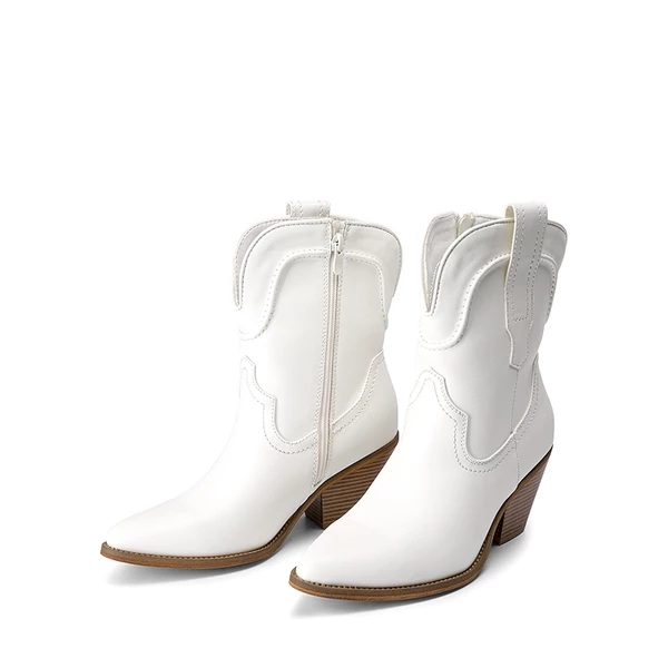 - Western Flair: Boasting a sleek pointed toe and a V-shaped cutout, these women’s western boots with curved detailing around the edges highlight your curves perfectly while infusing a contemporary twist into your ensembles.