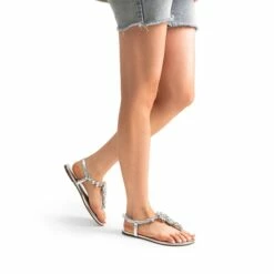 Be the first to review “Rhinestone T-Strap Flat Sandals SILVER” Cancel reply