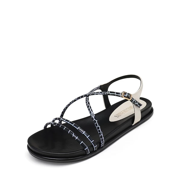 - Featuring crocodile printed straps, these colorful flat sandals are simple but not monotonous.
