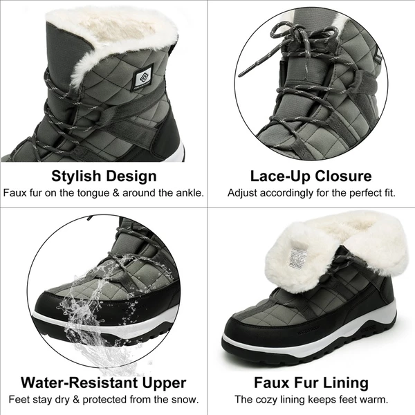 - Water-Resistant and Keep Dry: Designed with a water-resistant upper and splash proof boot shaft these women’s snow boots will keep your feet dry throughout winter.