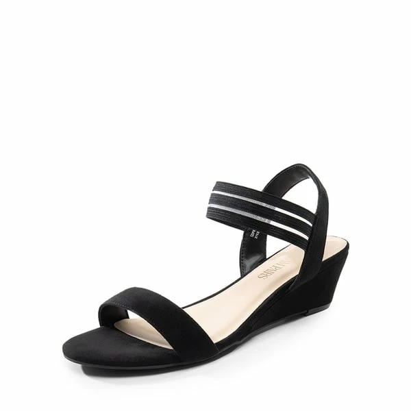 Slip On Elastic Strap Wedge Sandals BLACK-SUEDE