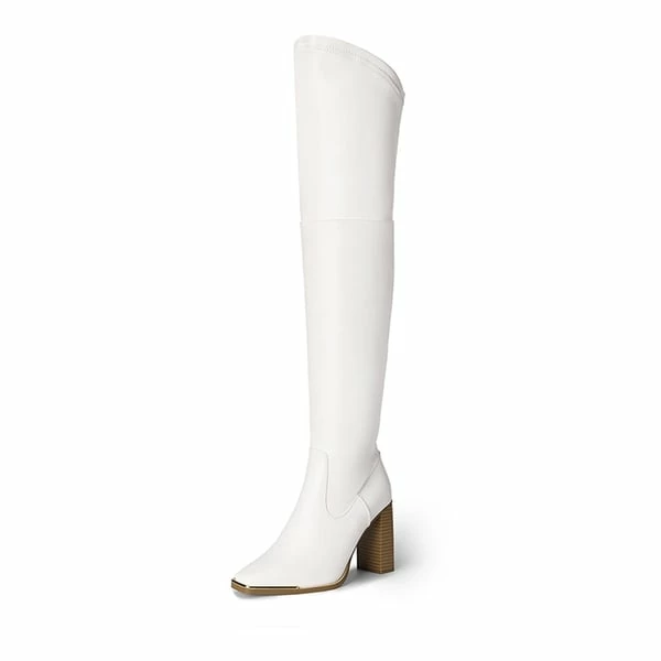 Square Toe High Heel Over The Knee Boots WHITE PU