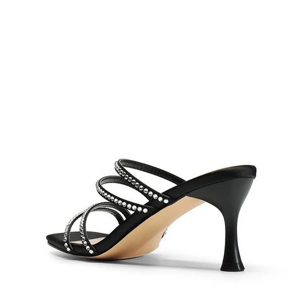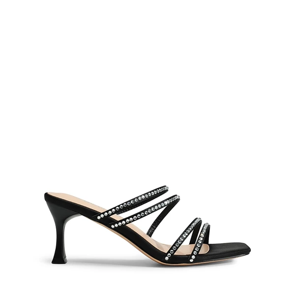 Square Toe Strappy Heel Sandals BLACK-RHINESTONE
