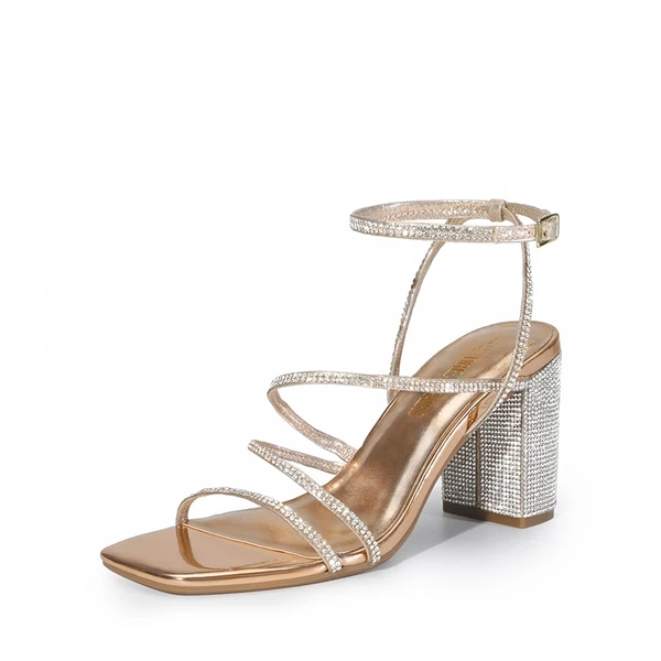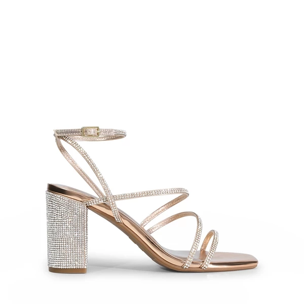 Strappy Chunky Heel Sandals ROSE GOLD-RHINESTONE