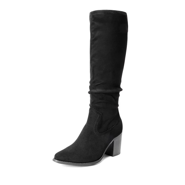 Step into style with these women’s suede knee-high boots. These suede boots boast a 3-inch layered heel that elevates your height while providing you with stable support. The elastic panel around the calf can accommodate different leg shapes for a better fit. Add these boots to your wardrobe so you can style them with a range of outfits