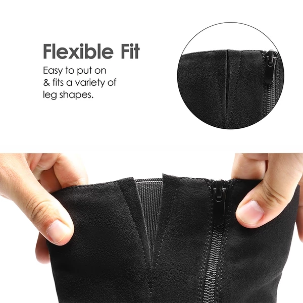 - Accentuates Legs: Designed with a knee-high shaft that is perfect for elongating your legs, the stretch panels allow for a wider shaft entry, and the zipper makes them easy to put on.