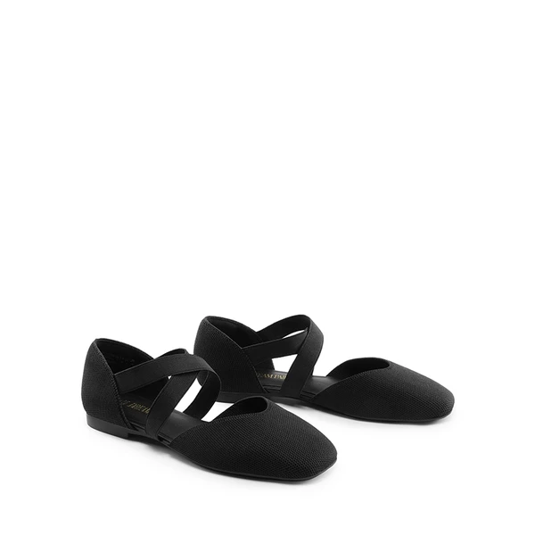 Sustainable Criss Cross Knit Ballet Flats BLACK-ECO