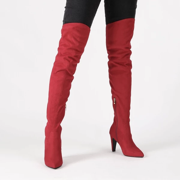 Sexy classy, stretch. Stretch your wardrobe to the limit with these elegant classy thigh high heeled boots. Pointed toe and pointed towards victory. We love knee-high boots that understand the assignment. Offering the class several options of material and color, these knee-high boots are a perfect addition to any outfit.