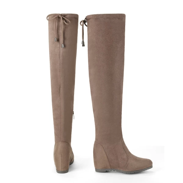 - These women’s thigh-high wedges boots are finished with a slightly padded faux fur lining and insole