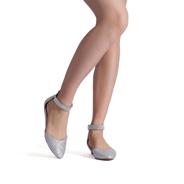 These sparkling and elegant ankle strap flat shoes have a sophisticated pointed-toe for a streamlined silhouette. The ankle strap is embellished with dazzling rhinestones that provide an amazing look for any outfit.