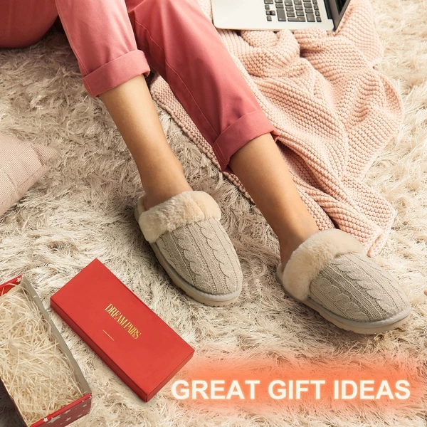Enjoy some downtime in these Dream Pairs Women’s Knitted House Slippers. A soft and breathable knitted upper insulates, while a soft faux fur lining keeps feet feeling pampered. An open-back design makes putting on and taking off the slippers a breeze.