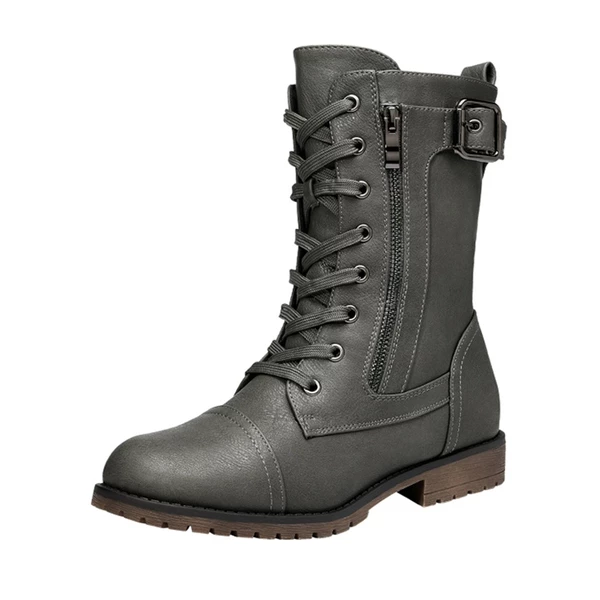 Durable and cute. Strong and trendy. These are all perfect ways to describe our mid calf lace up boots. Our women’s mid calf winter boots are combat boots in their purest form. With rubber TPR outtsole and faux fur lining these winter boats will soar above and beyond your expectations.?