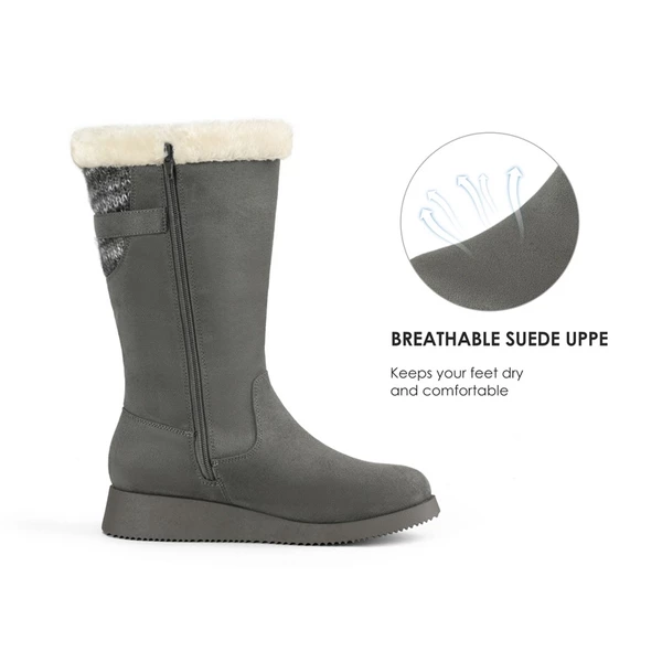 Fur covered like the snow-covered streets. Enjoy fur lined snow boots that are elegant and comfy. We love the look of our snow boots. They are comfortable, warm, elegant, and extremely modern. Keep up to date with mid-calf snow boots dedicated to keeping you young. The added wedge adds durability and support to an already perfect look.