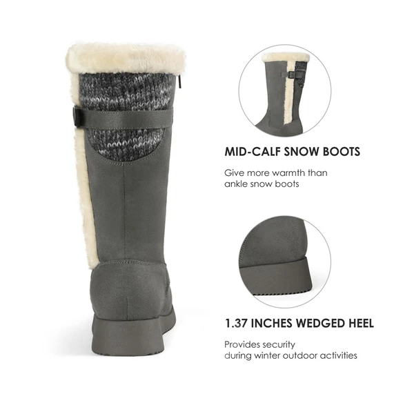 - Faux fur lined mid calf snow boots to keep you warm in cold weather